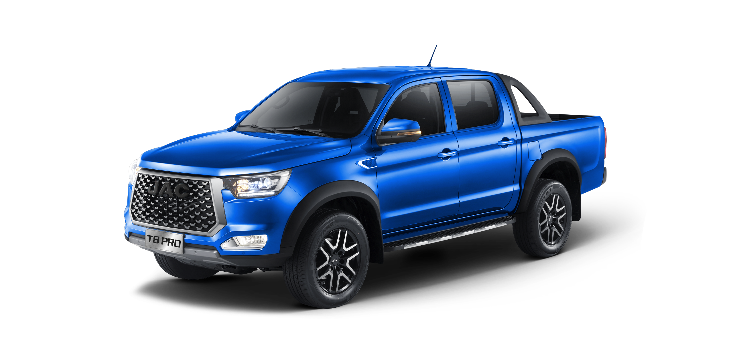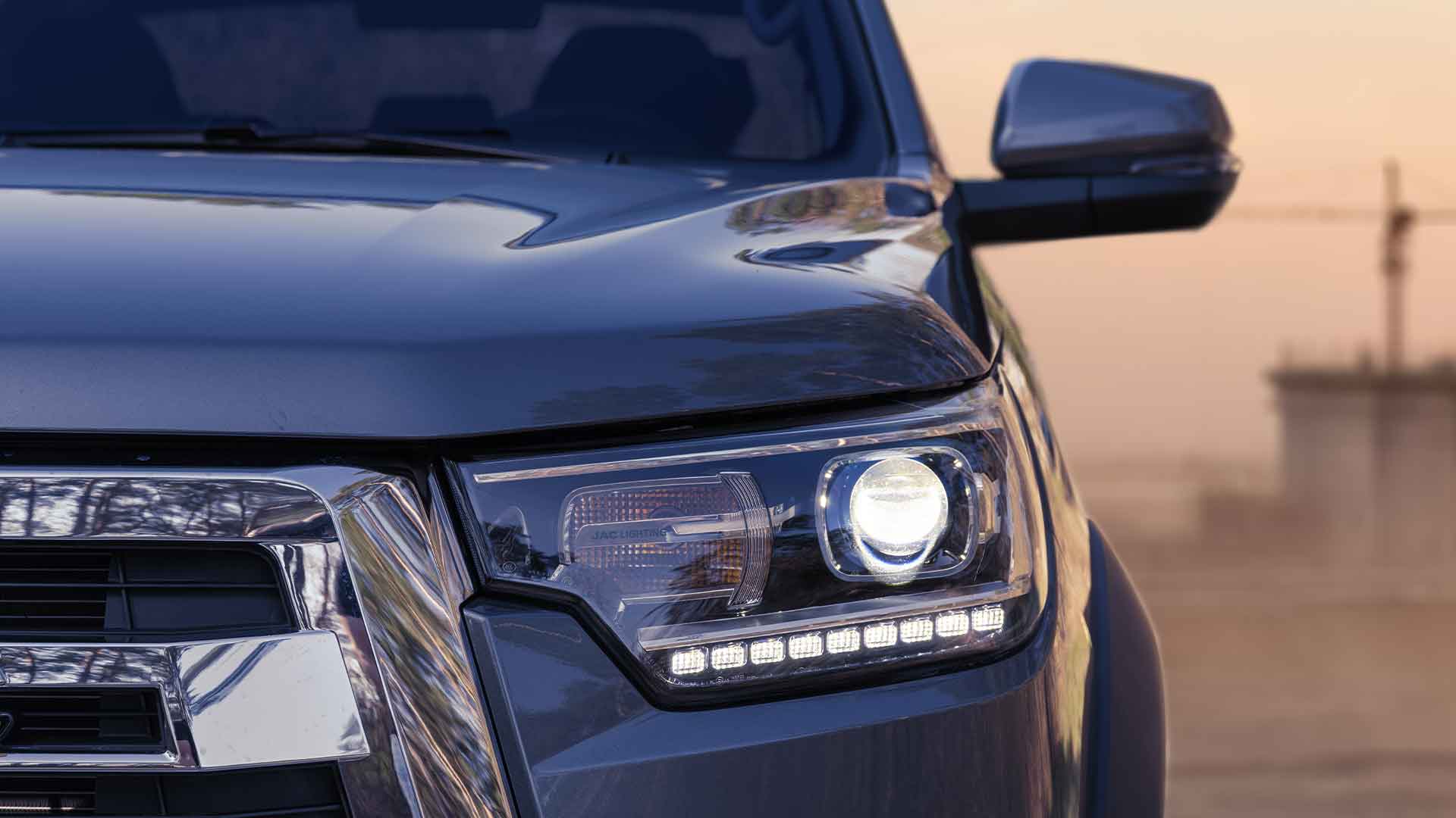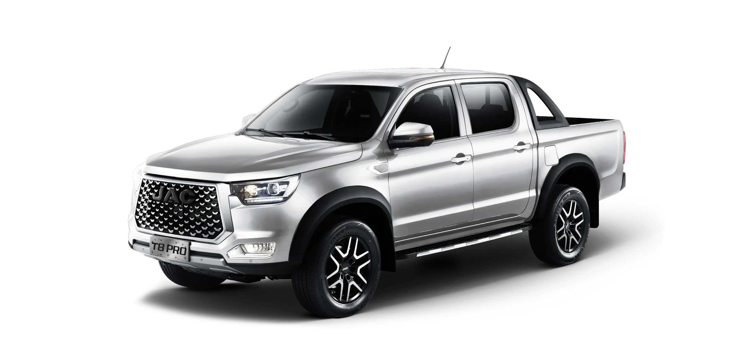 JAC T8 Pro to pick-up stworzony dla kierowców oczekujących funkcjonalności i wyrazistego stylu. Muskularna sylwetka i solidne proporcje nadają mu potężny charakter, a masywny zderzak i światła LED podkreślają nowoczesne DNA. Dynamiczne linie nadwozia łączą estetykę z aerodynamiką, dzięki czemu auto wygląda efektownie i pewnie prowadzi się w każdych warunkach. T8 Pro wyróżnia się zarówno w mieście, jak i na wymagających trasach terenowych, dając poczucie bezpieczeństwa i inspirując do odkrywania nowych przygód.